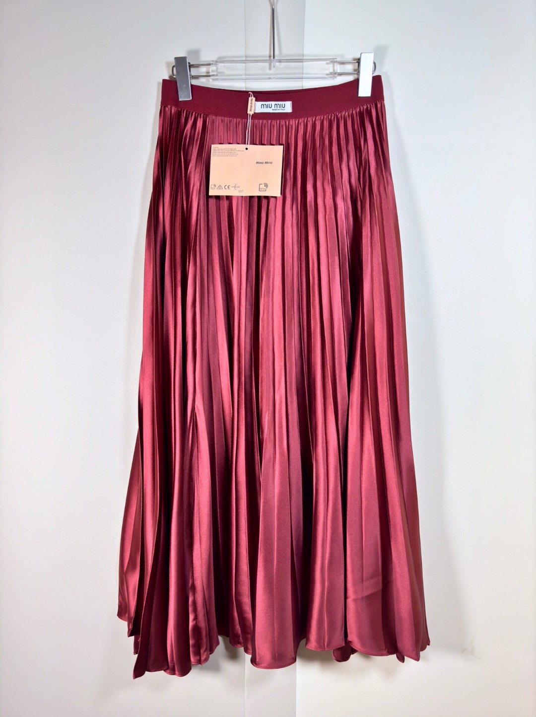 ????MIU* 24 Fall new pleated skirt/skirt design Satin pleated high waist crisp drape shiny pleated long skirt Popping Street skirt Gentle style medium long pleated skirt. Size: SMLXL
