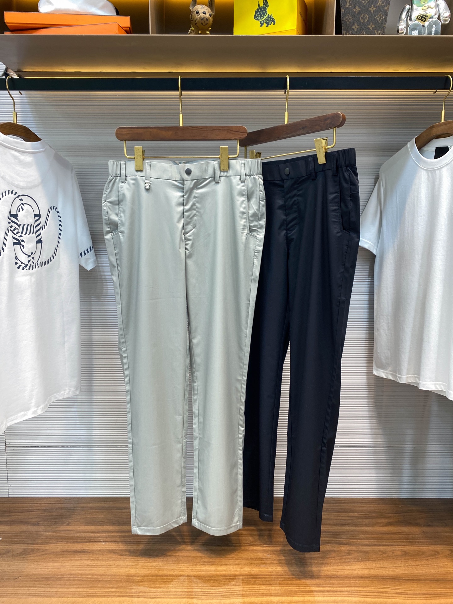 BC25SS Spring/Summer new lightweight twill cotton casual pants, men's metal badge pendant business casual versatile suit pants! Trading company channels are rarely available, and they are simultaneously released on the official website! BC's new casual trousers, with their outstanding fabric, unique design, classic cut and exquisite details, have become an excellent choice for urban elites to showcase their personal style and taste! Its fabric is carefully selected from specially customized twill cotton fabric by customers. Not only is it light and thin, like a gentle summer breeze caressing the skin, bringing endless freshness and comfort, but it also has a skin-friendly and silky touch. Every touch is like an intimate conversation with the fine silk, making it hard to put down! The front is ingeniously inlaid with a delicate metal badge pendant, which not only has a unique shape and shines brightly, but also embodies the brand's unique cultural heritage and historical inheritance, allowing people to recognize its extraordinary status symbol at a glance! In terms of cutting, it adopts the classic straight-leg design. This design not only perfectly conforms to ergonomics, outlining smooth and elegant leg lines, but also visually elongates the leg proportion, instantly giving the wearer a tall and straight posture! Whether paired with formal shirts and leather shoes or casual T-shirts and sports shoes, it can be easily handled, showcasing a unique business casual style. This allows the wearer to be at ease in any occasion and fully display extraordinary charm! Grey/navy blue, two colors in! Size: M-3XL Size M: Waist 82cm- Hip 102cm- front 25cm- Thigh 62cm- Pant length 103cm- pant hem 35cm Size L: Waist 85cm- Hip 106cm- front 26cm- Thigh 63cm- Pant length 104cm- pant hem 36cm XL size: Waist 88cm- Hip 110cm- front 27cm- Thigh 64cm- Pant length 105cm- pant hem 37cm Size XXL: Waist 92cm- Hip 114cm- front 28cm- Thigh 66cm- Pant length 106cm- pant hem 38cm Size 3XL: Waist 96cm- Hip 118cm- front 30cm- Thigh 68cm- Pant length 106cm- pant hem 39cm Size recommendation (Standard style) : If you are 174 to 140 pounds tall, size L is suitable for you to try on! For boys weighing under 135 pounds, choose size M; for those weighing 135 to 148 pounds, size L; for those weighing 148 to 162 pounds, size XL; for those weighing 162 to 176 pounds, size XXL; and for those weighing 176 to 190 pounds, size 3XL!