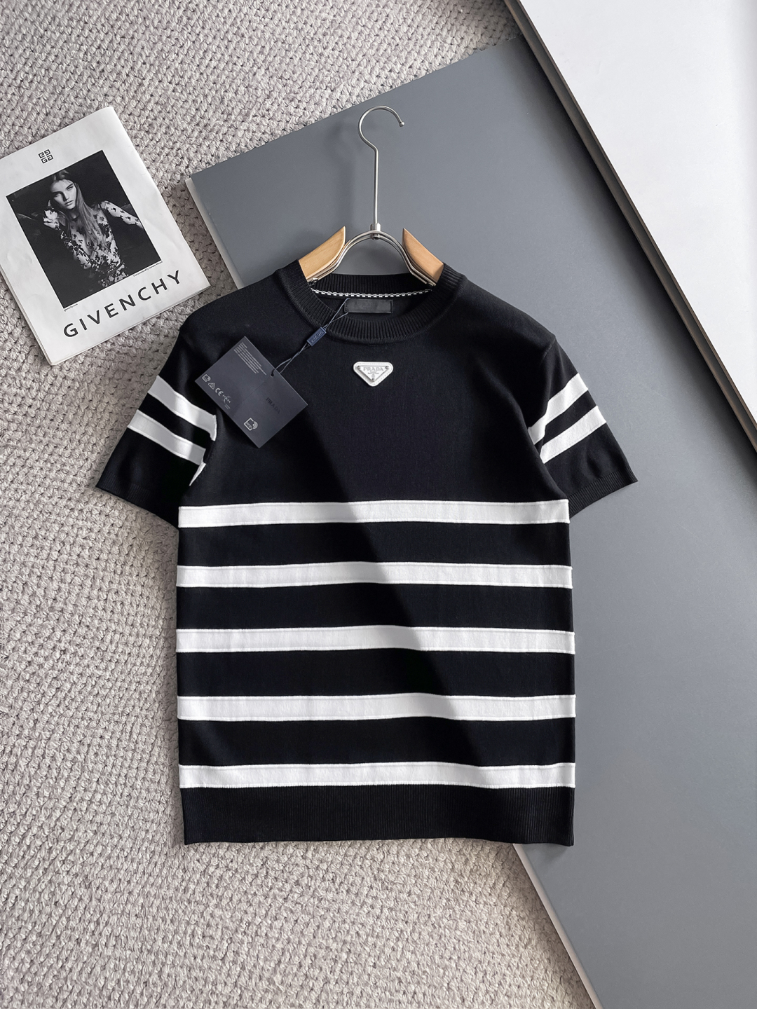 Prada's new high-end, elegant and fashionable men's custom top-of-the-line casual short-sleeved round-neck knitted sweater for early spring 2025 is a must-have item for high-end individuals. The original logo design adds a touch of luxury and nobility. The seamless and perfect cut makes it comfortable, elegant and high-end to wear. The hand feel is very smooth and soft. It can be easily worn for business, fashion and casual wear, and the age range is very wide. In line with the practical dressing customs of men, the preferred size for urban seasoned fashionistas is M-3XL.