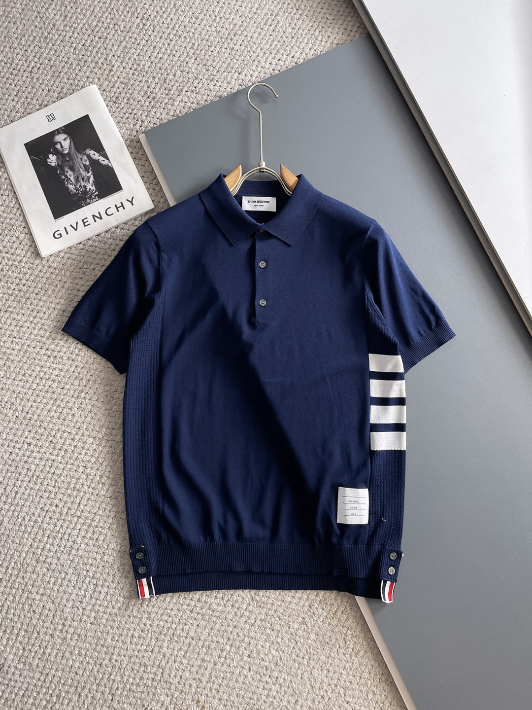 TB Spring/Summer 2025 new simple and versatile letter embroidered top-quality imported private knitwear polo short-sleeved shirt, high-end heavy industry jacquard short-sleeved knitwear. The counter style is fashionable yet luxurious, and the quality is beyond doubt. The wearing effect is excellent. The same size as the official website of luxury is M-xxxl