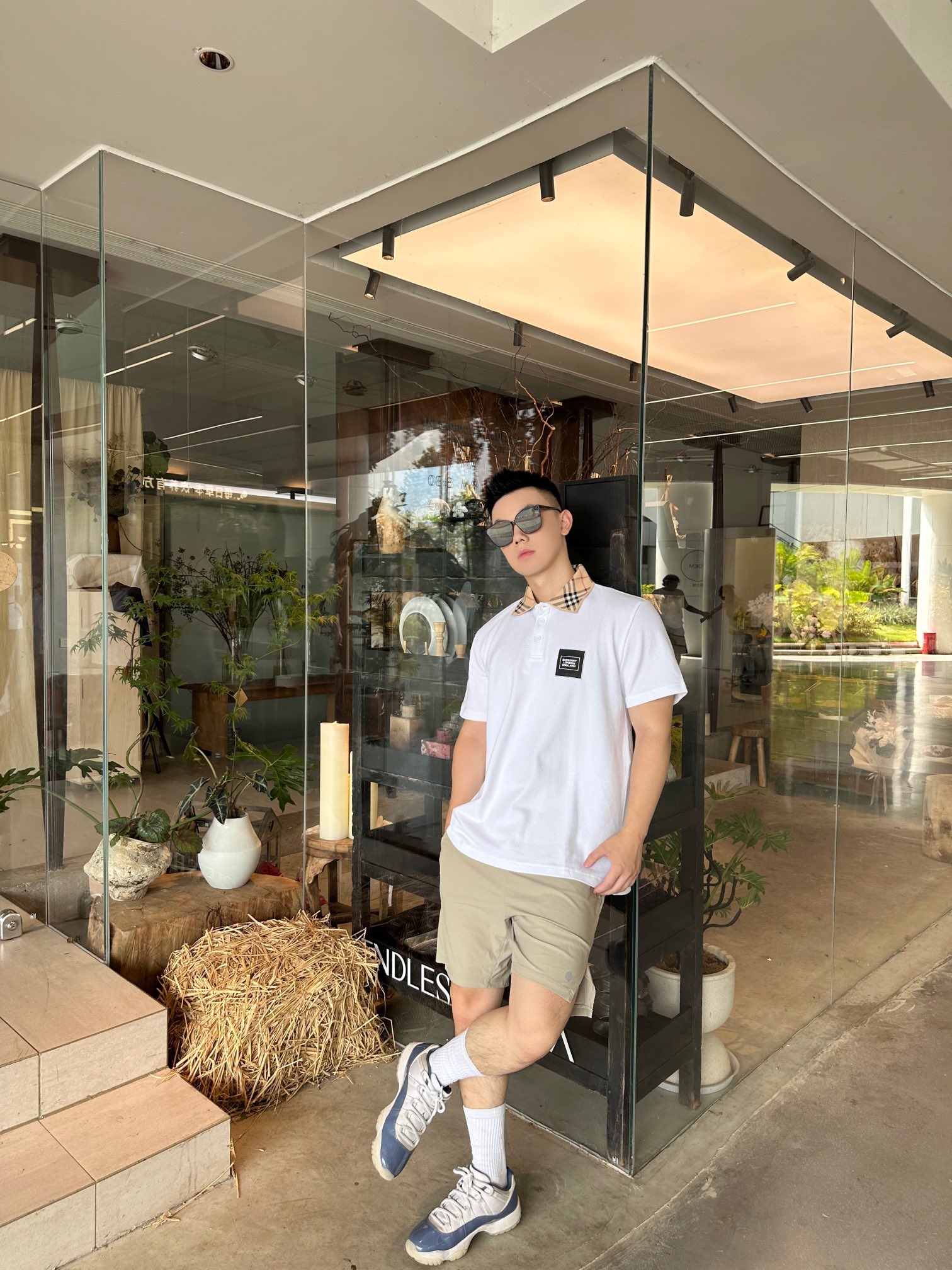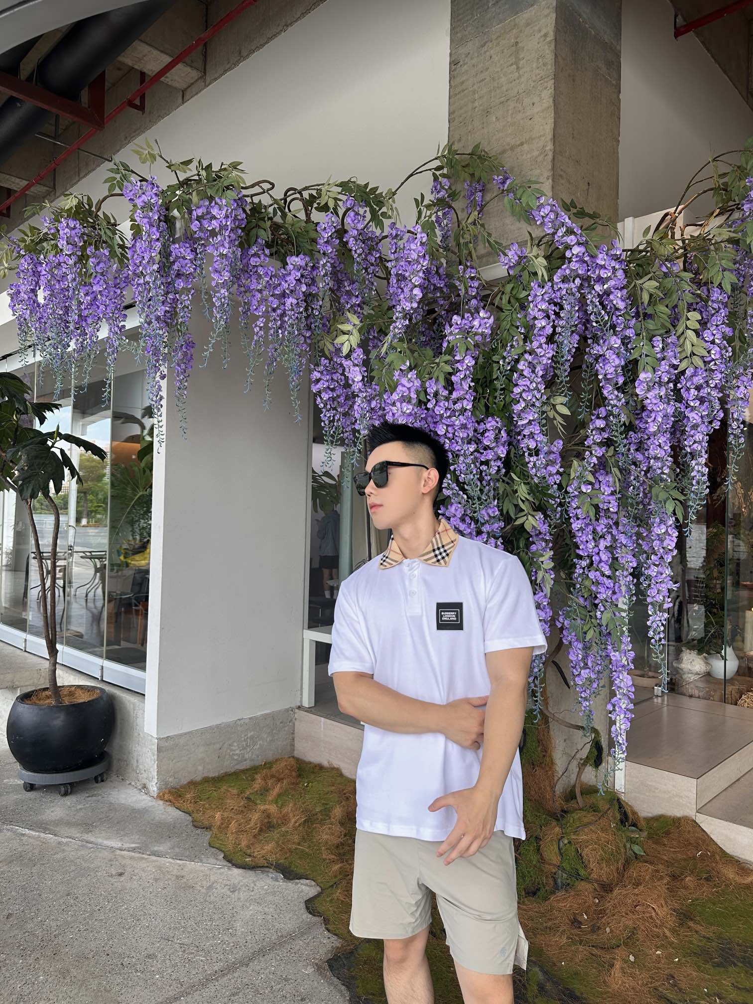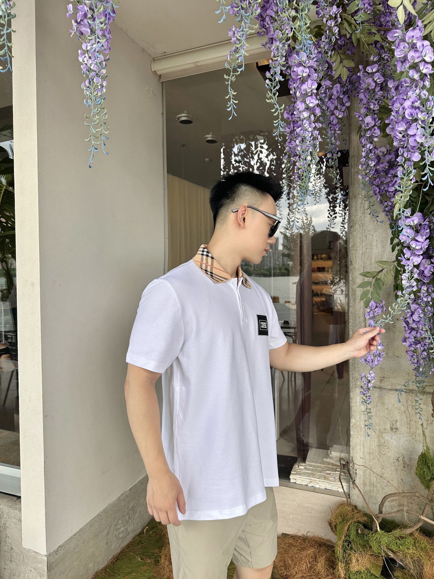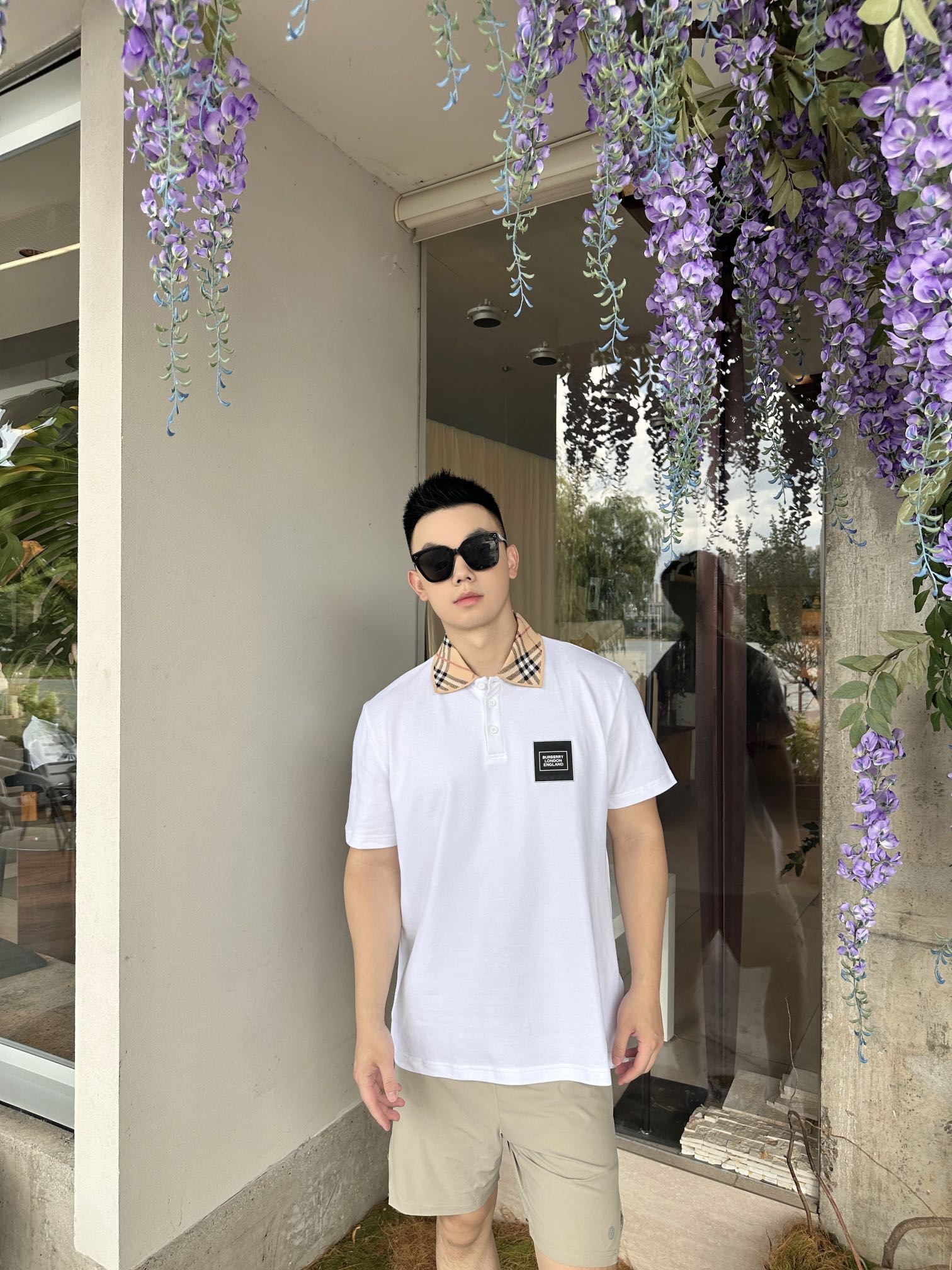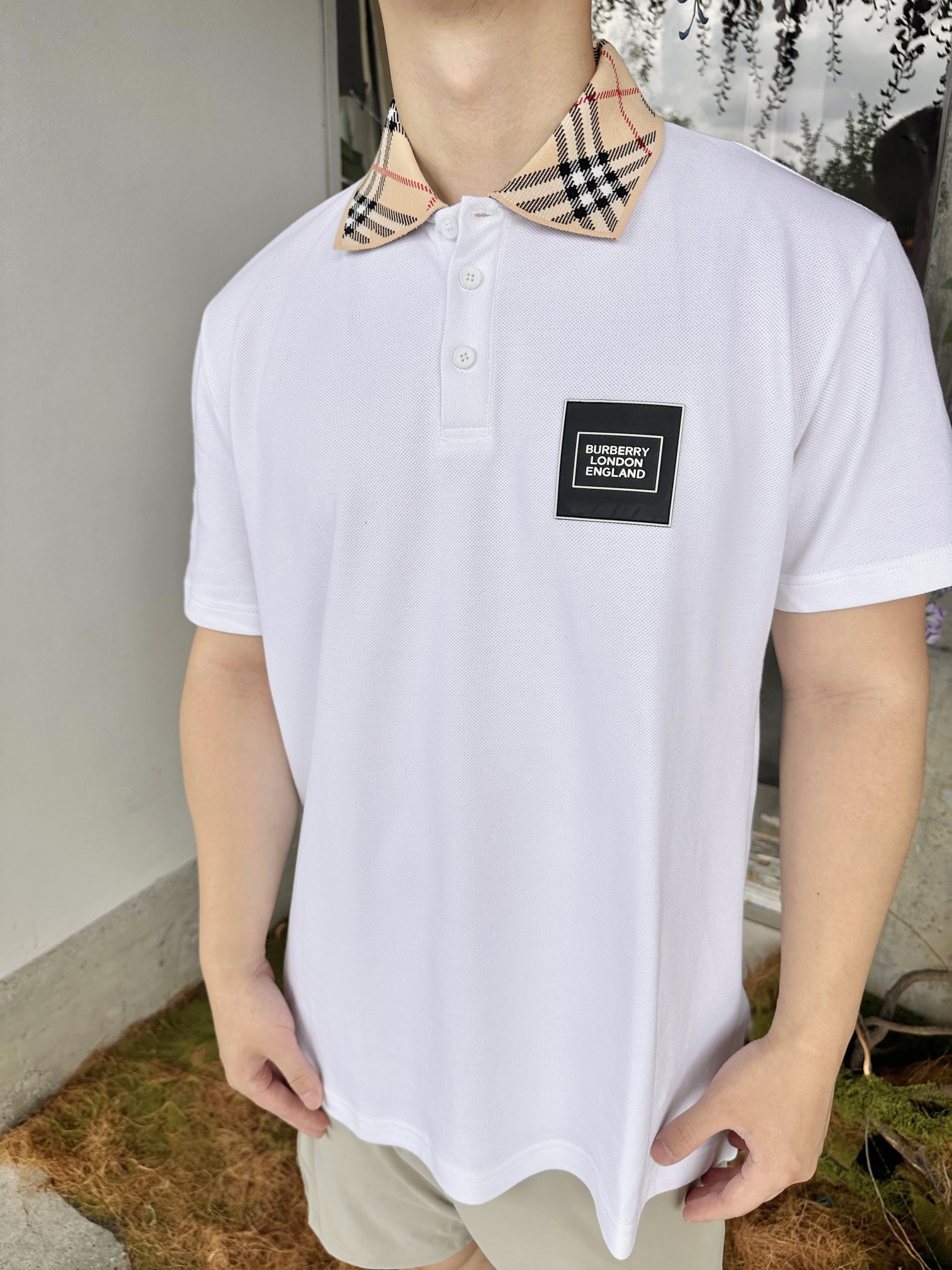 Gather on the Burberry leather logo short-sleeved POLO shirts