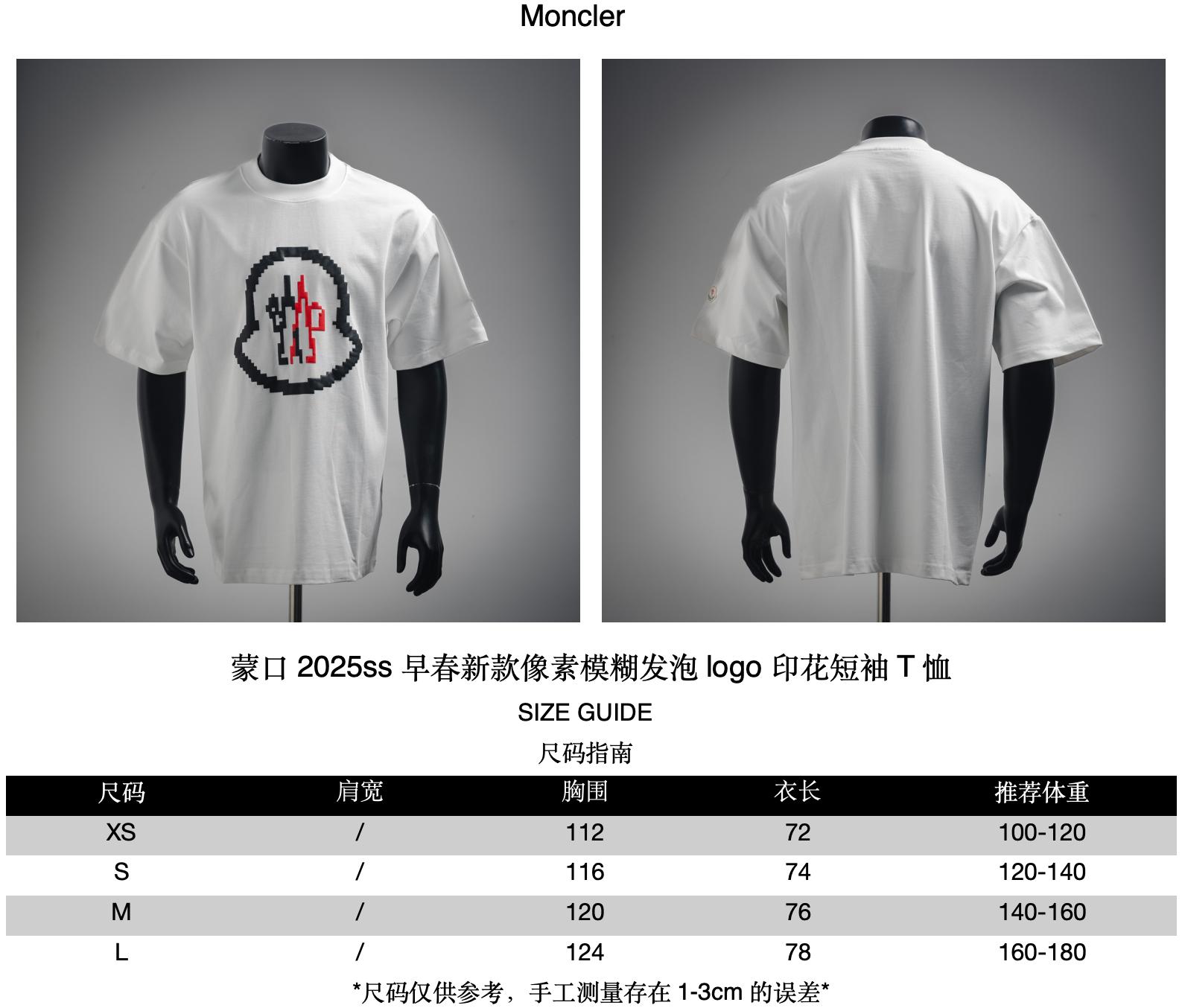 Moncler/ Mengkou 2025ss Early Spring New pixel-blurred foam logo Printed short-sleeved T-shirt size recommendations