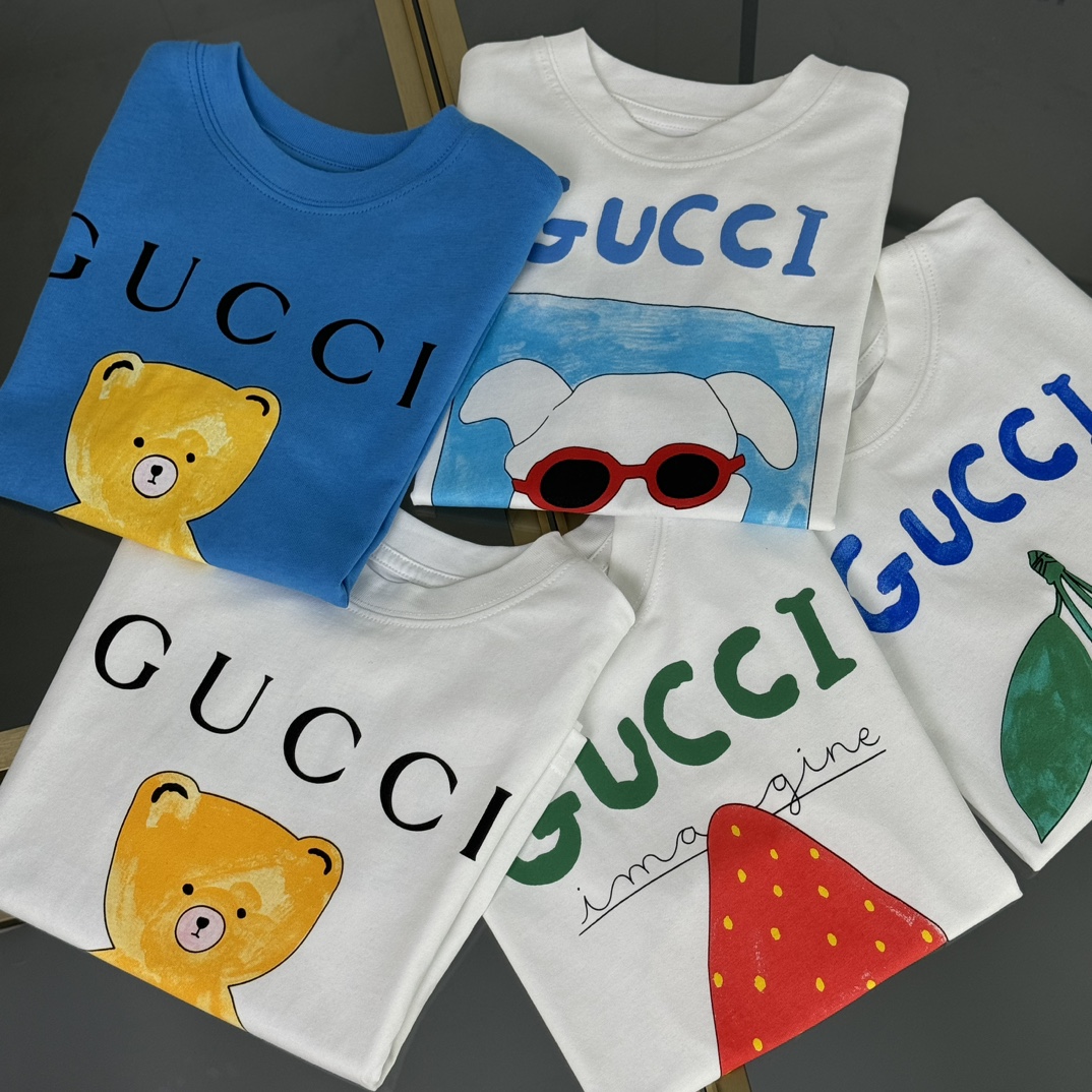 Gucci Gucci, high-end children's wear, private T-shirt, cotton fabric, the printing of the chest of imported machine 3 d digital print ? foaming process, the body comfortable, good-looking, code number: 100/110/120/130/140/150 cm