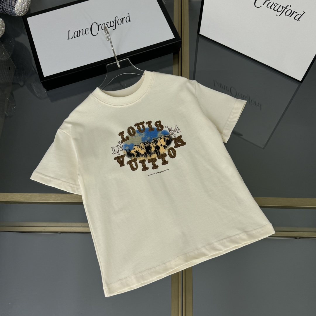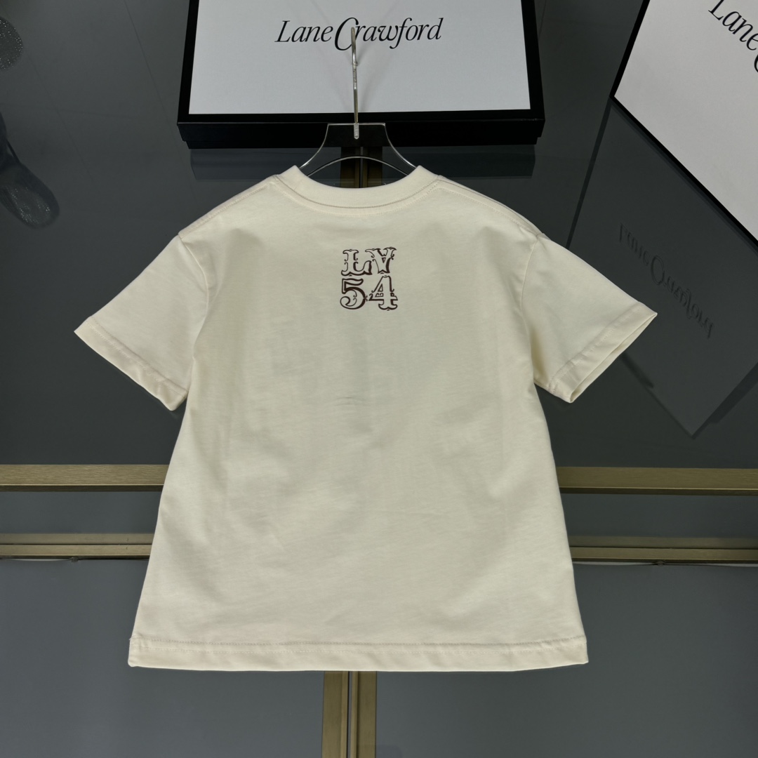 LV high-end children's wear, private T-shirt, cotton fabrics, classic logo printed letters 3 d digital graffiti, upper body comfortable, good-looking, code number: 100/110/120/130/140/150 cm