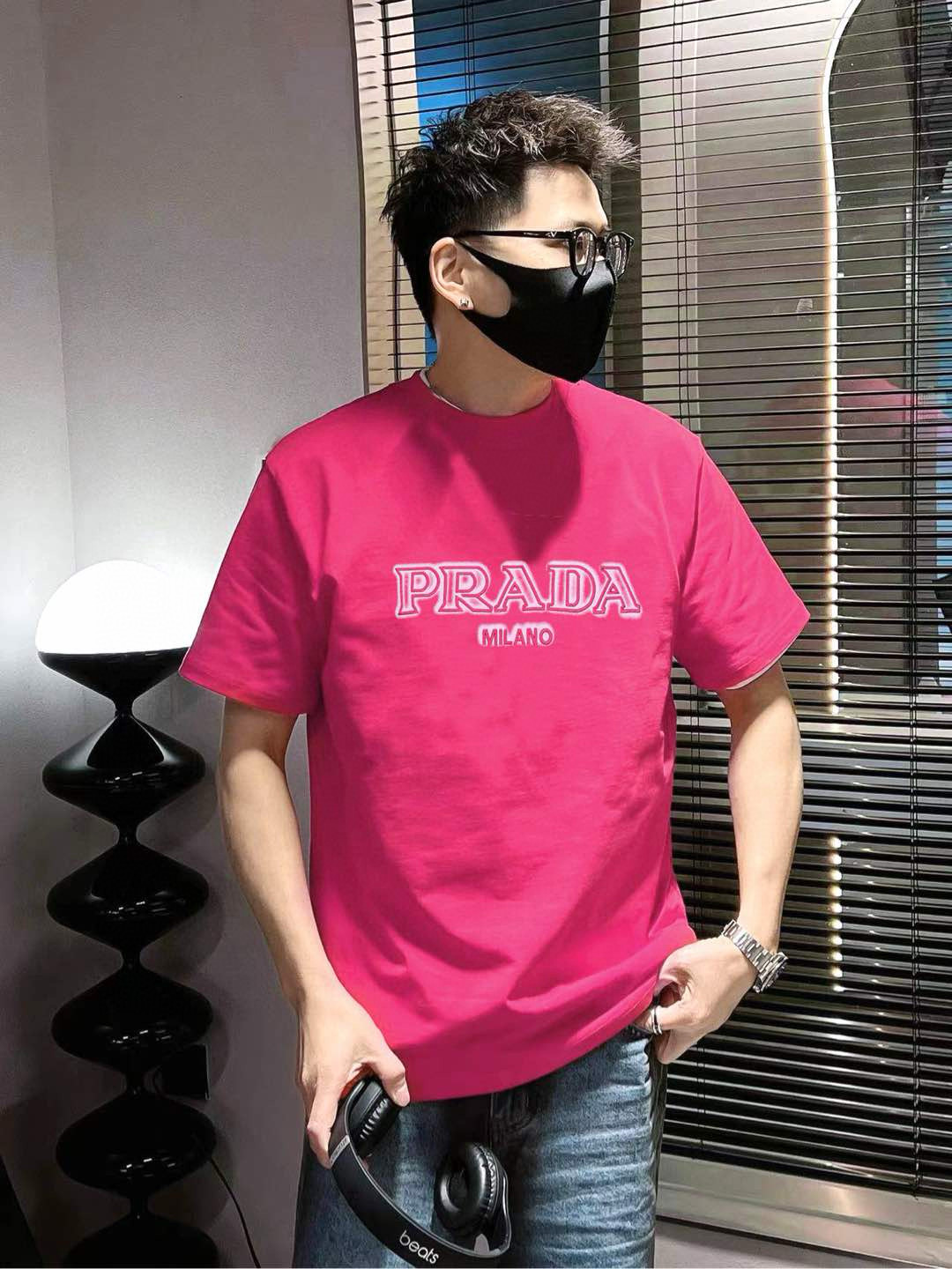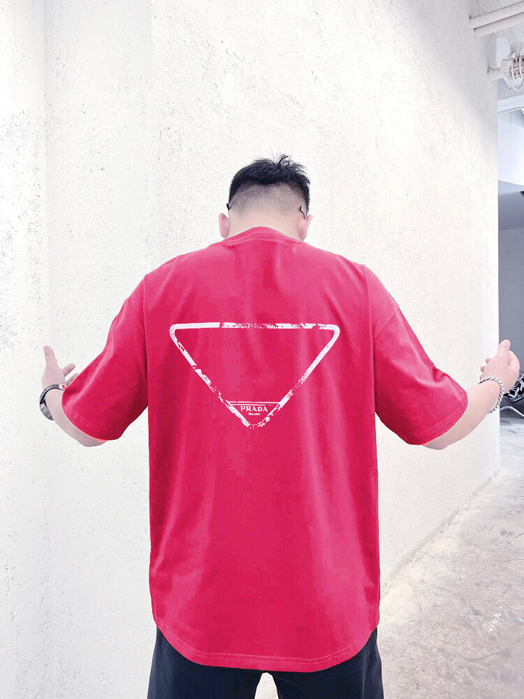 #Prada/ Prada large logo letter embroidery short-sleeved wearing effect
