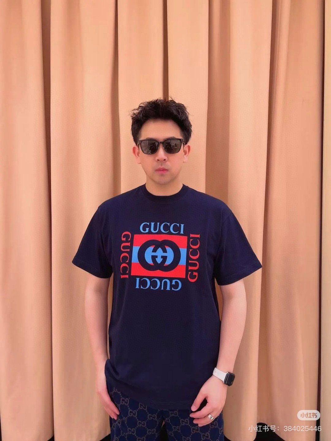 #Gucci/ Gucci 25ss Double G square logo print short sleeve effect
