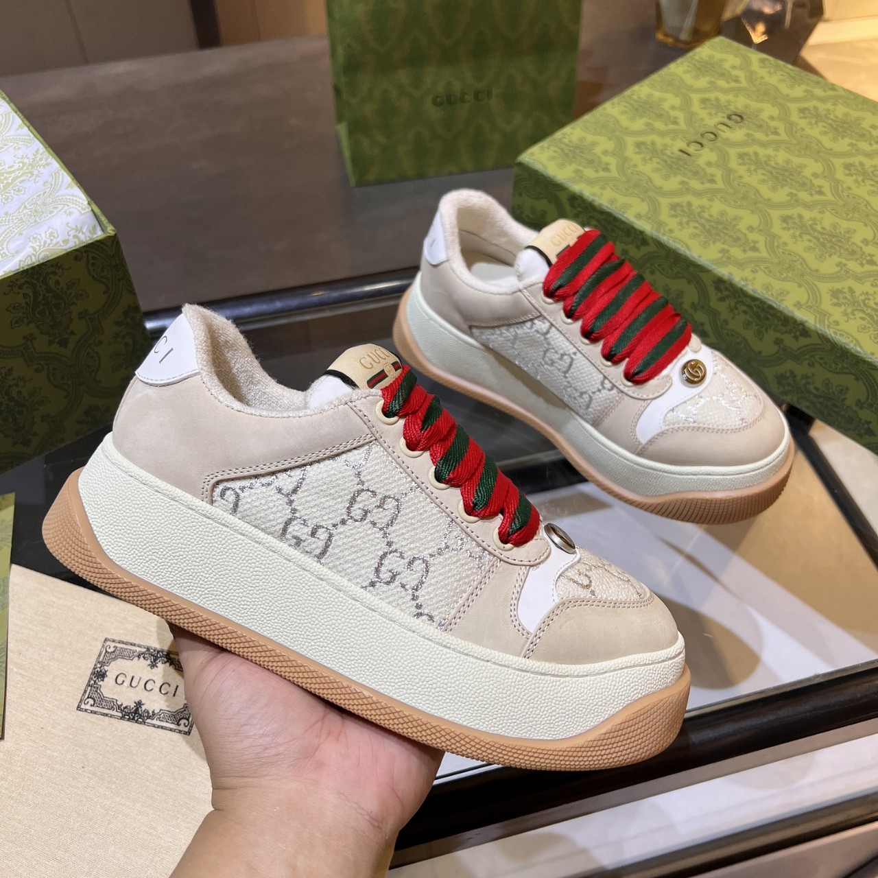 ?? ?? Top edition ?? ORIGINAL PURCHASE DEVELOPED and MADE, quality 100/99.99 free inspection. Focus on volume and price during the off-season This pair of sports shoes is made of GG canvas material. The purple leather details add depth to the item with a sharp contrast, making the details look more full! ?? ?? Fabric: original imported cowhide + double G fabric ?? Inside: original custom breathable towel fleece ?? Sole: Original molded TPU outsole ?? Base thickness: about 6cm Size: 35-40 for females, 39-44 for males (34.41 for females, 38.45 for males). Custom-made