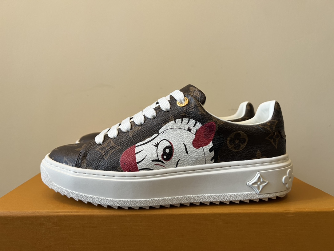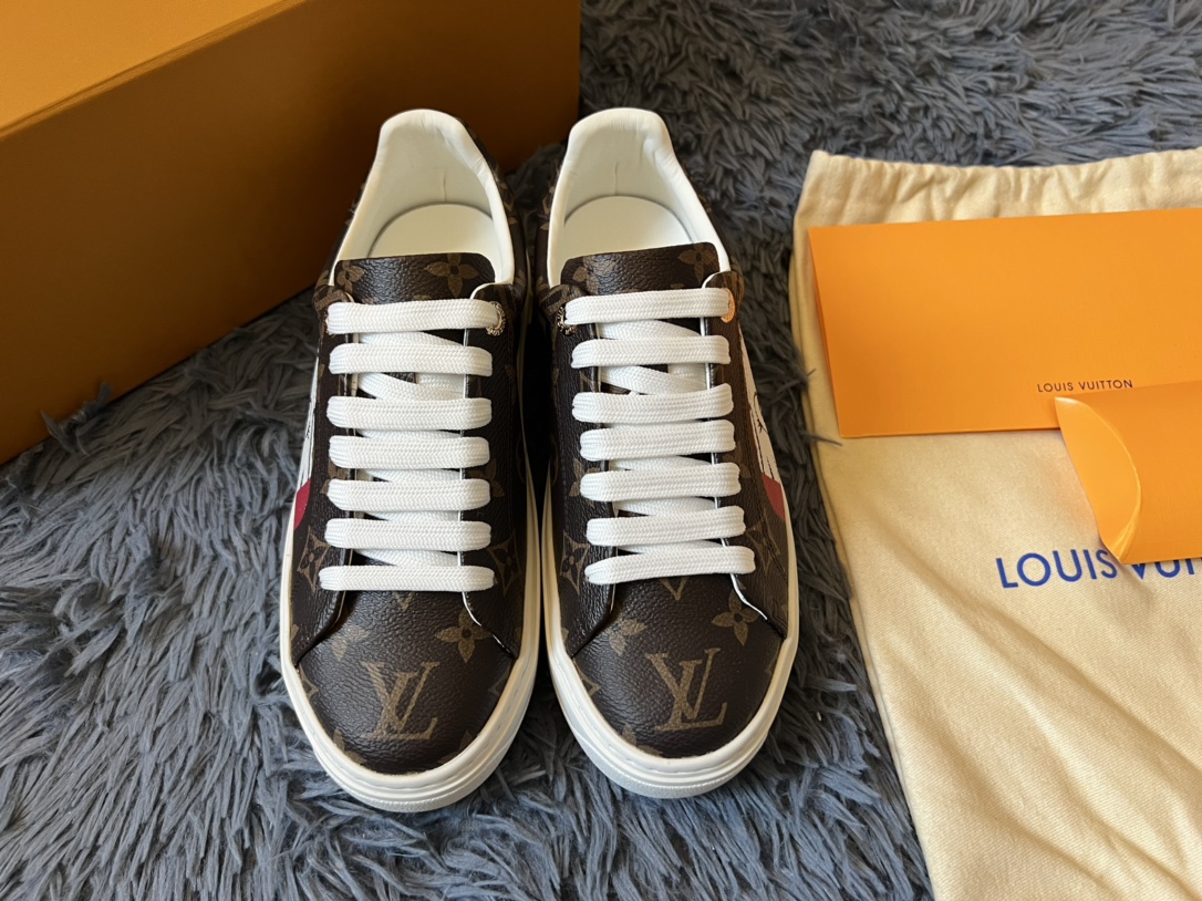 ???? Louis Vuitton Time Out 24 Spring/Summer new sneakers give sneakers ELEGANT and HIGH-END style Easy height increase simple and versatile selected calfskin material water-dyed sheepskin lining TPU outsole Size:35-41