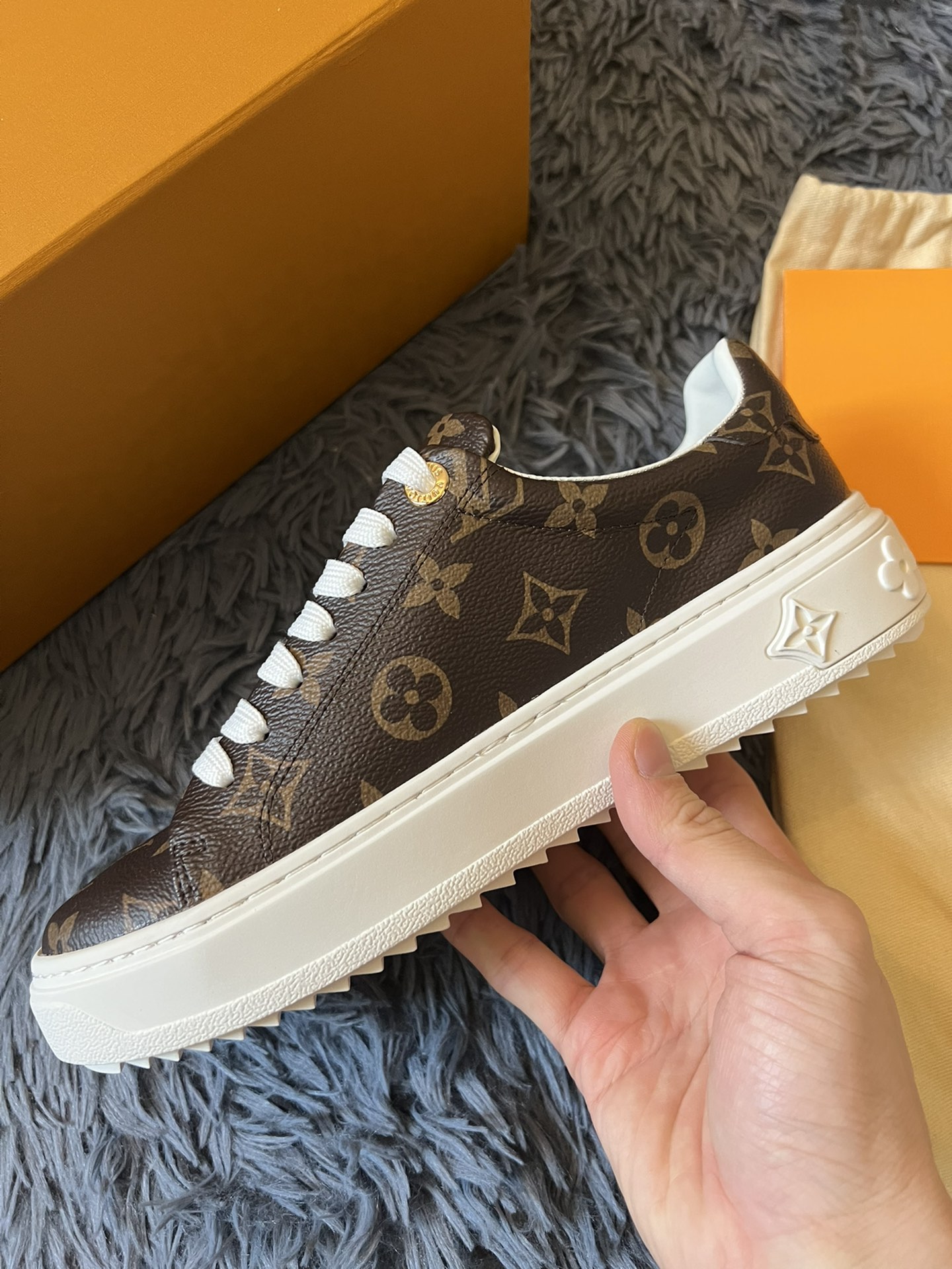 ???? Louis Vuitton Time Out 24 Spring/Summer new sneakers give sneakers ELEGANT and HIGH-END style Easy height increase simple and versatile selected calfskin material water-dyed sheepskin lining TPU outsole Size:35-41