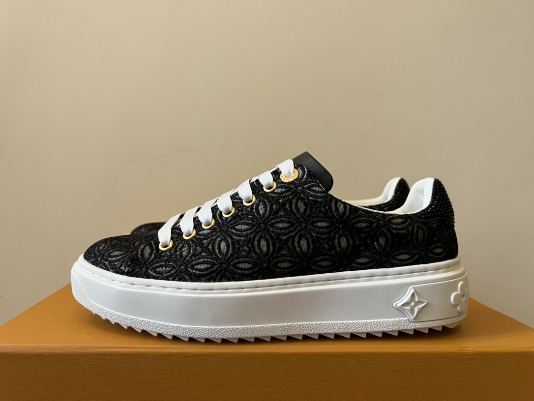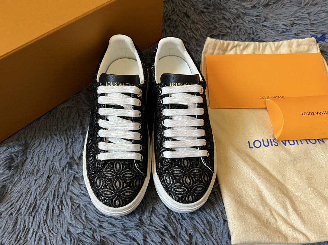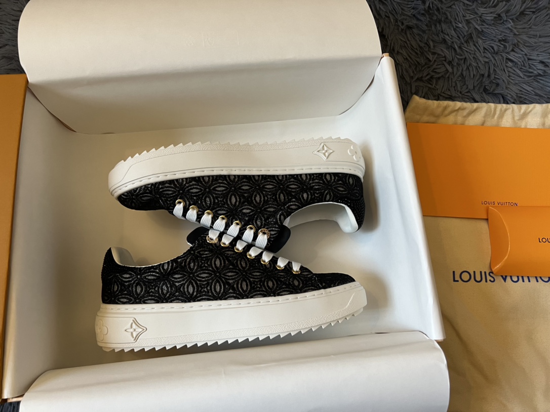 ???? Louis Vuitton Time Out 24 Spring/Summer new sneakers give sneakers ELEGANT and HIGH-END style Easy height increase simple and versatile selected calfskin material water-dyed sheepskin lining TPU outsole Size:35-41