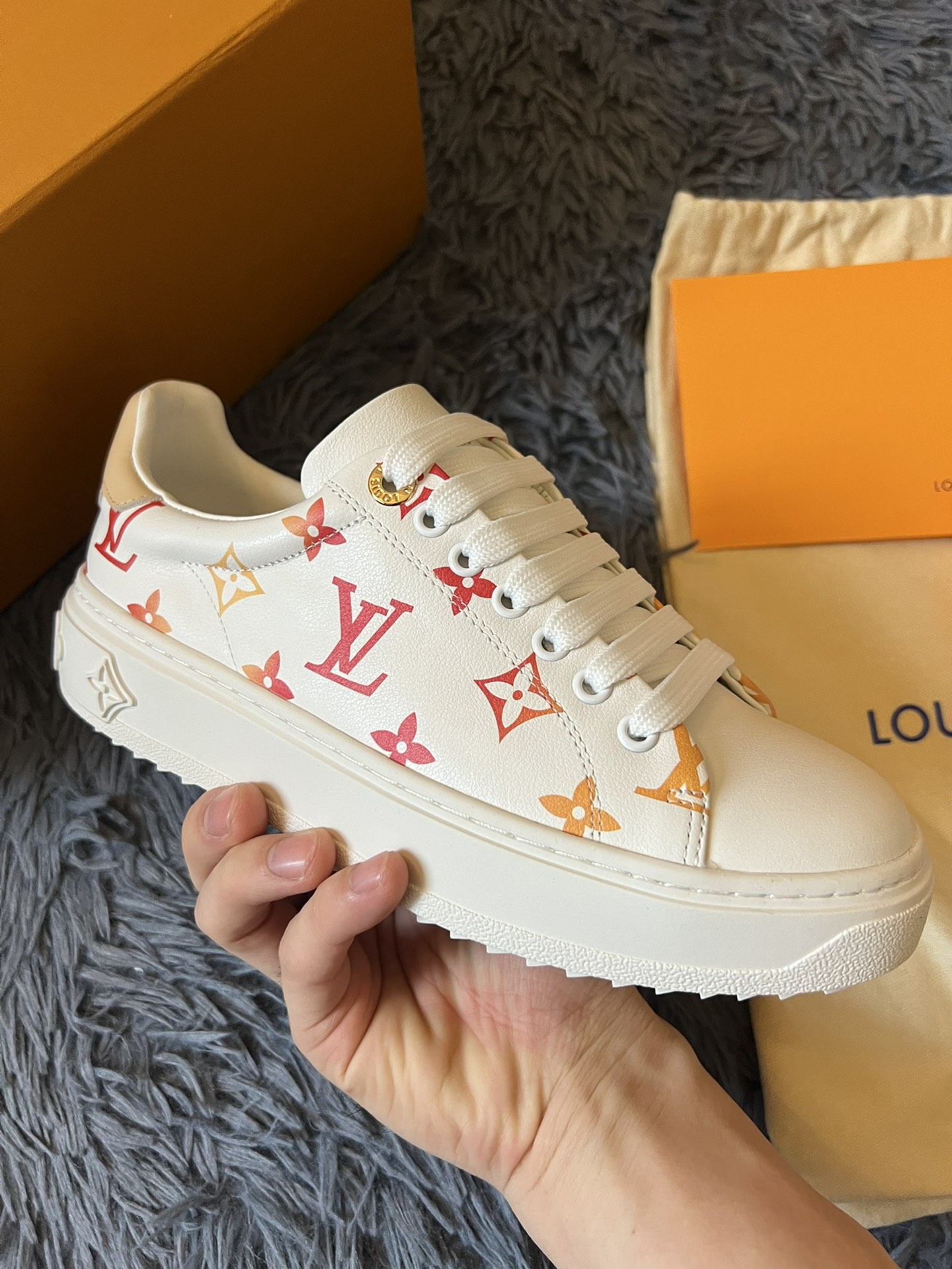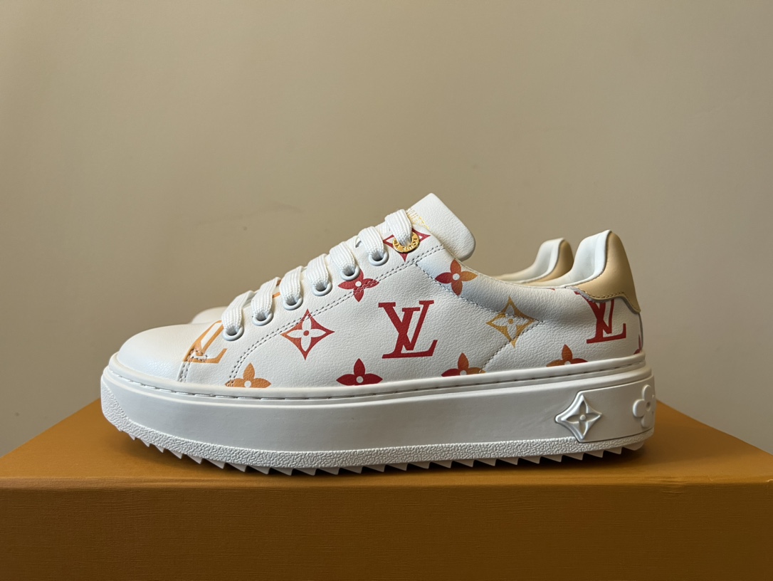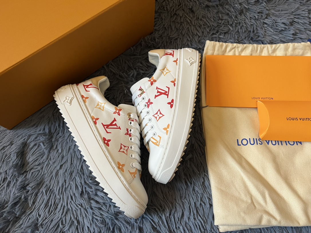 ???? Louis Vuitton Time Out 24 Spring/Summer new sneakers give sneakers ELEGANT and HIGH-END style Easy height increase simple and versatile selected calfskin material water-dyed sheepskin lining TPU outsole Size:35-41