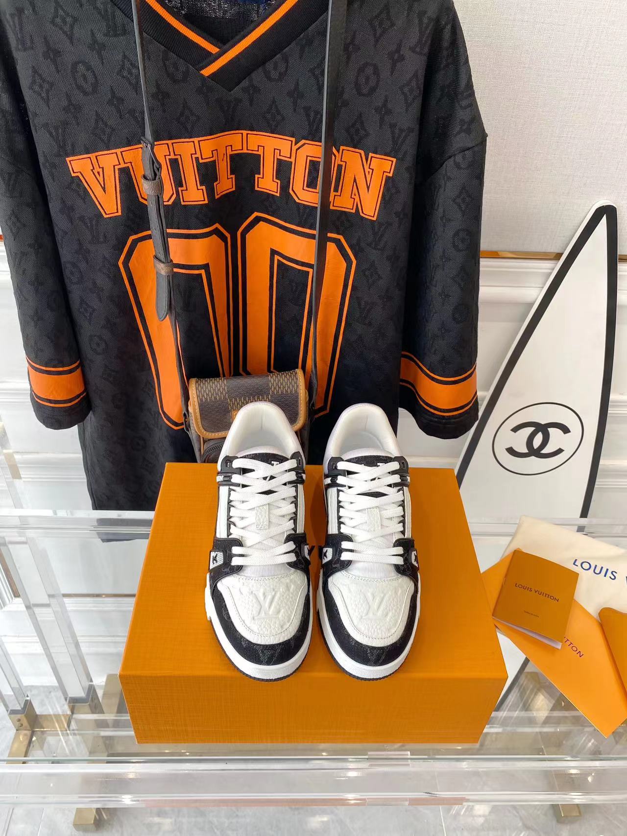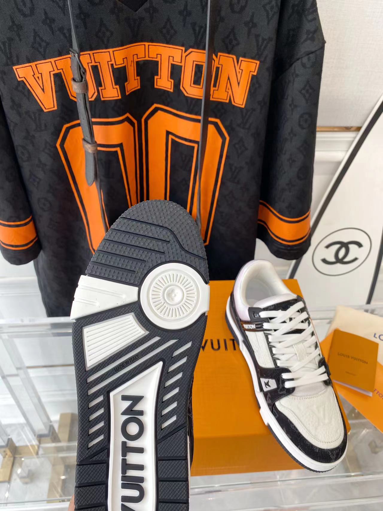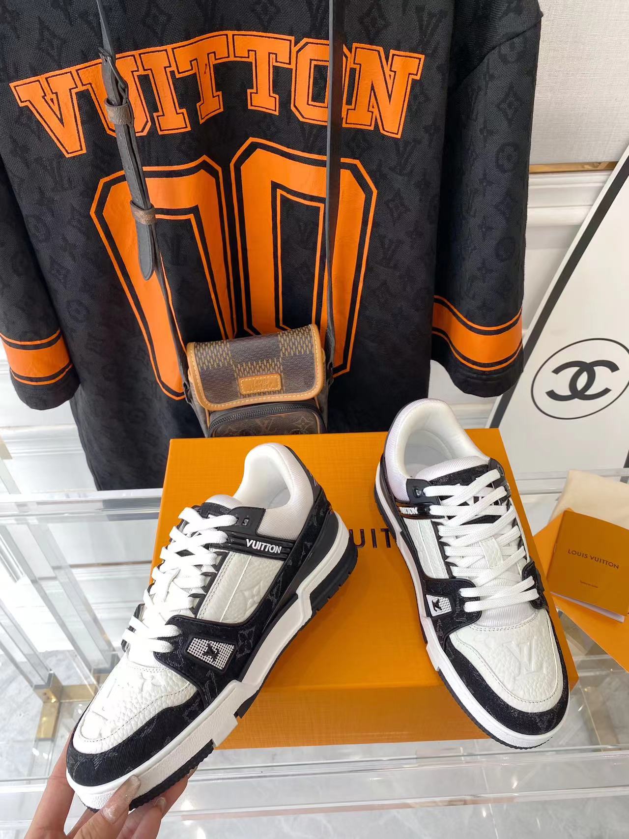 ???? ??L. The ??TRAINER sneaker, a favorite of Virgil Abloh, the artistic director of men's wear, is made of Monogram embossed calfskin and has a mesh lining. The innovative TPU 3-color outsole is decorated with Monogram flowers.