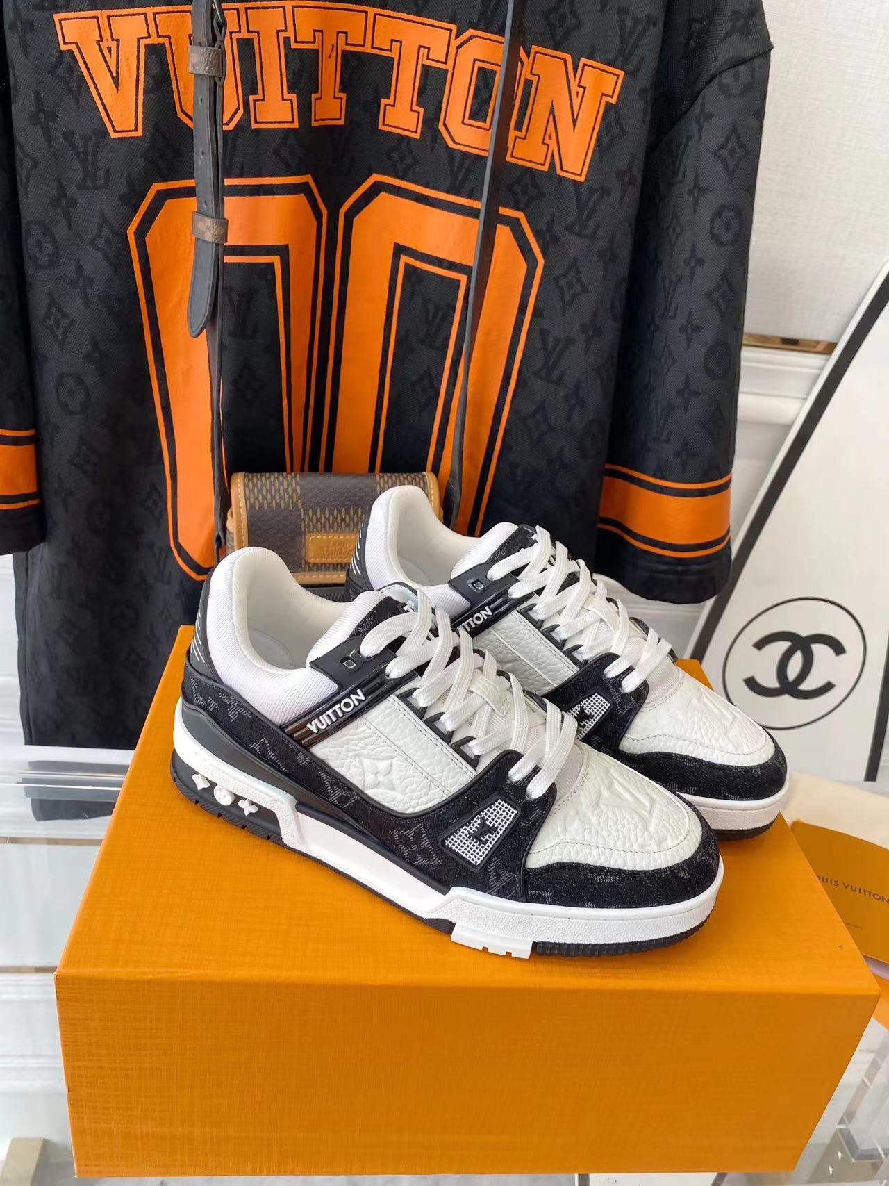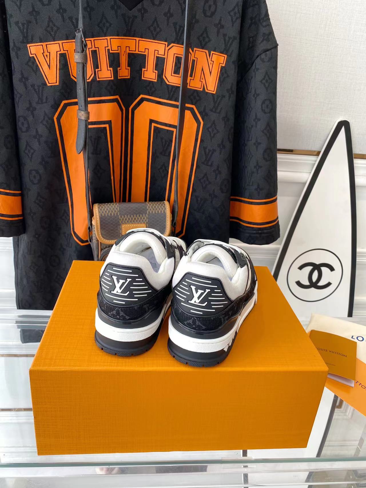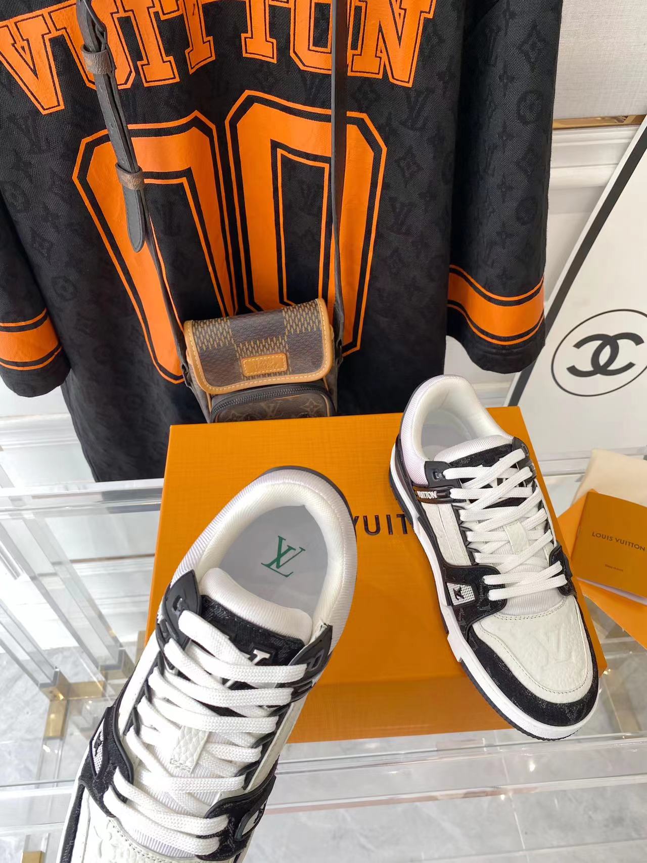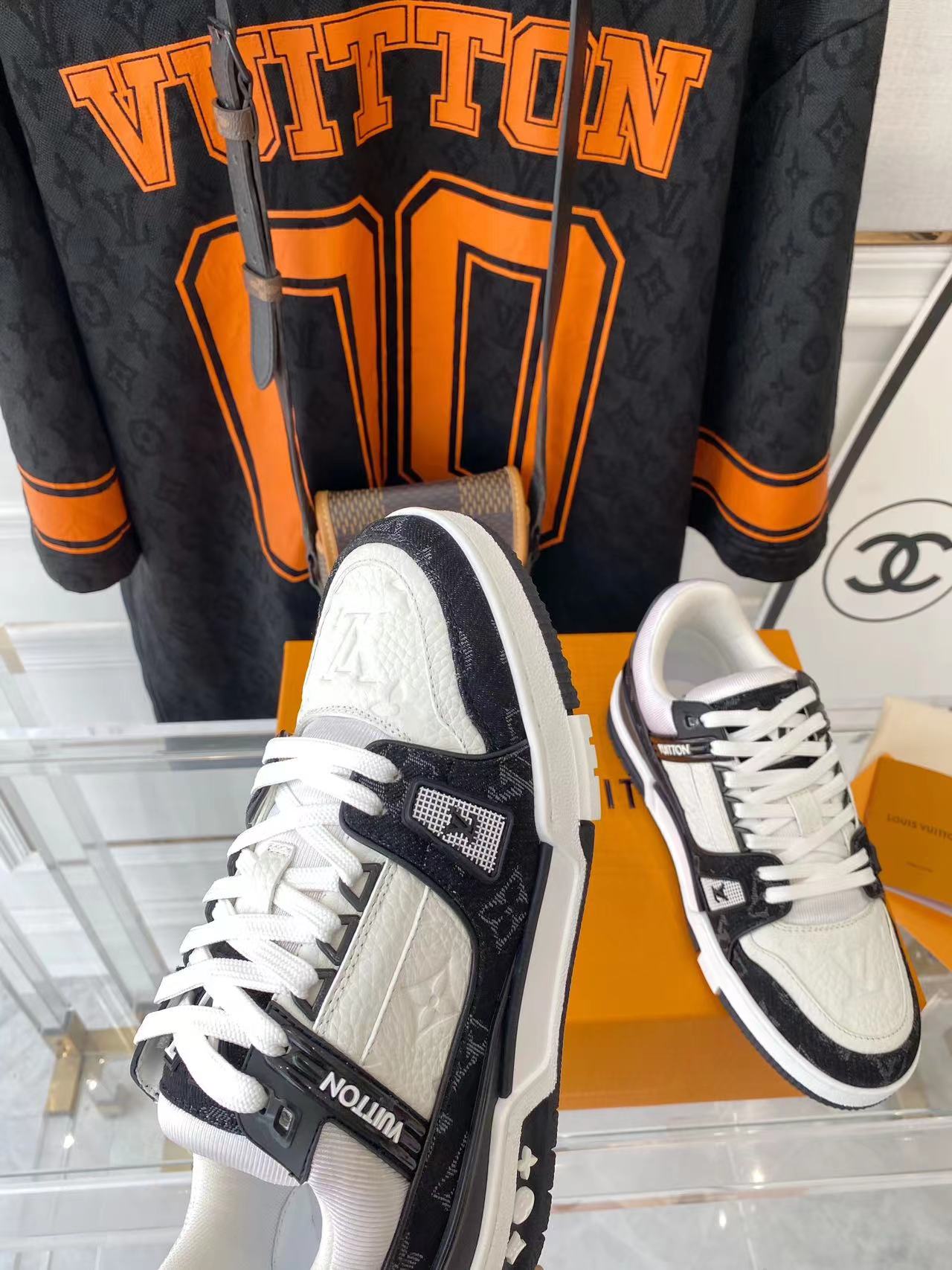 ???? ??L. The ??TRAINER sneaker, a favorite of Virgil Abloh, the artistic director of men's wear, is made of Monogram embossed calfskin and has a mesh lining. The innovative TPU 3-color outsole is decorated with Monogram flowers.