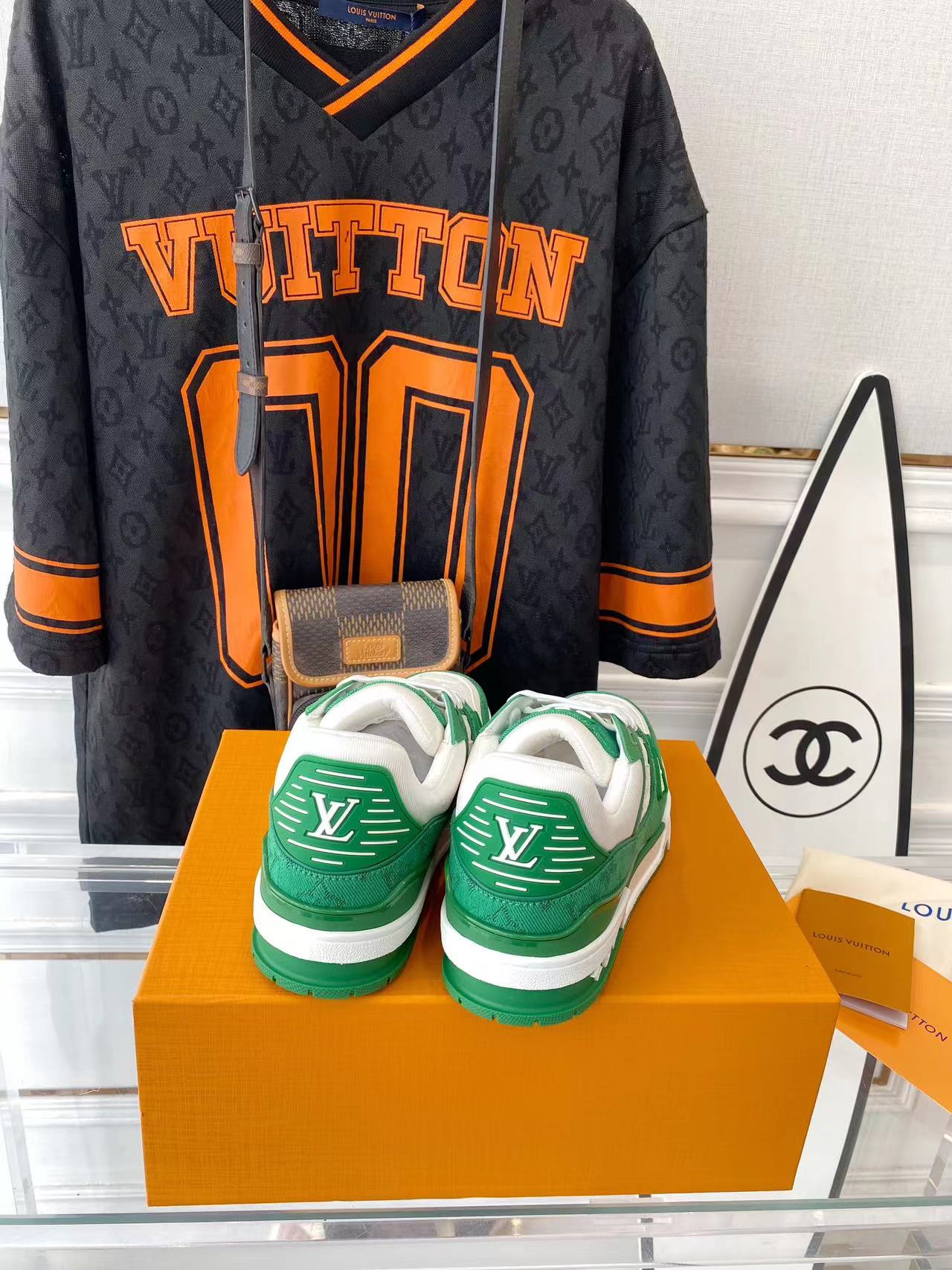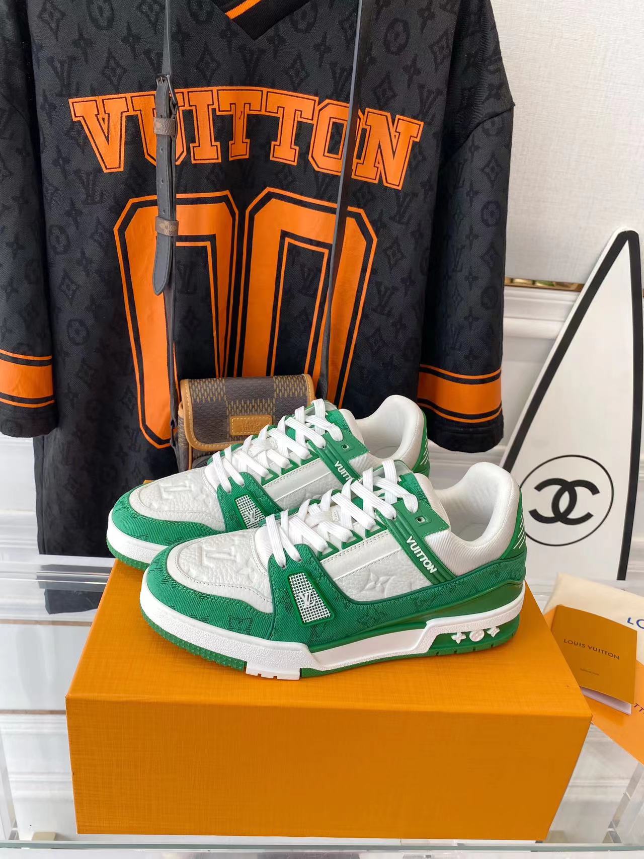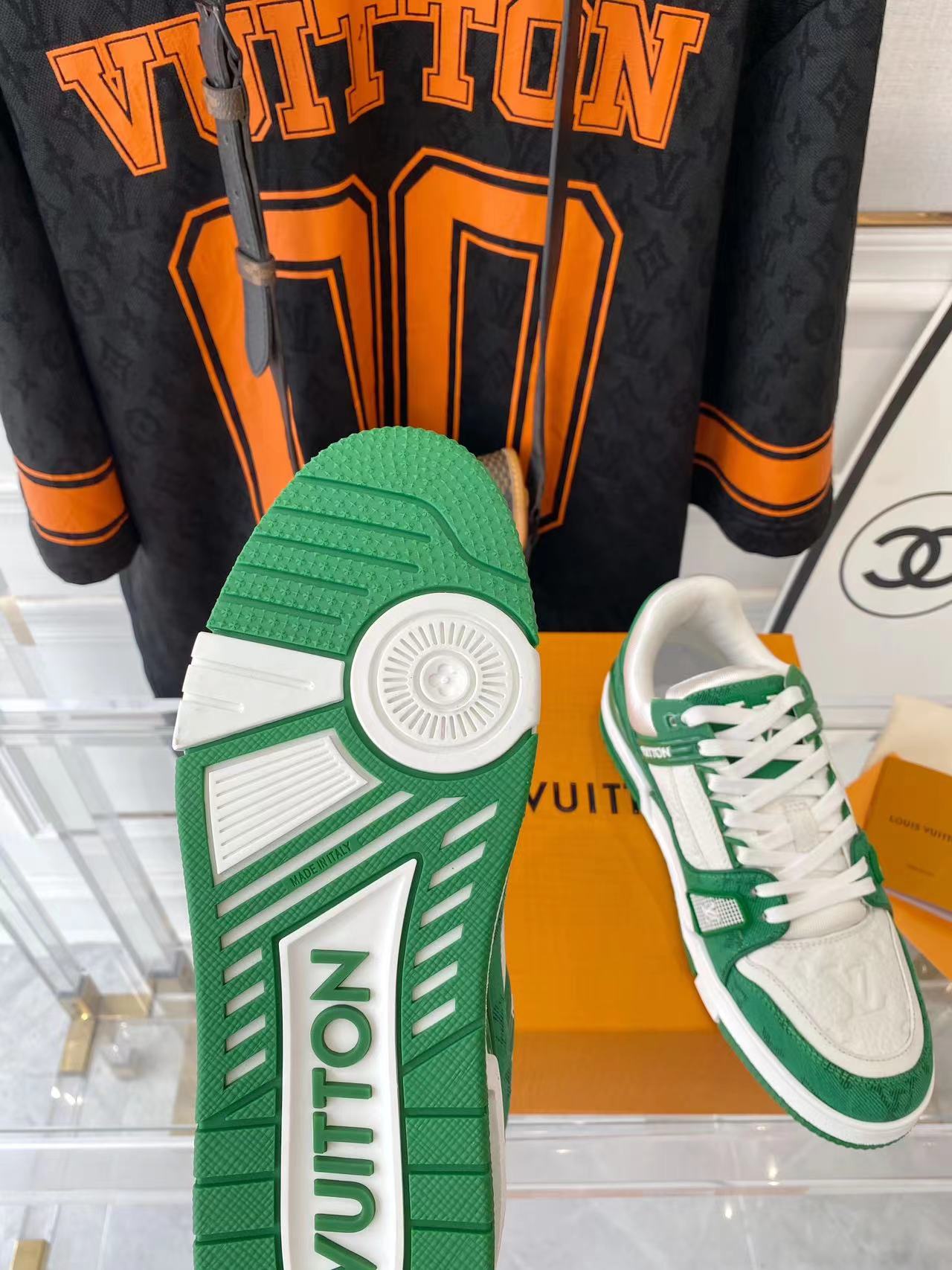 ???? ??L. The ??TRAINER sneaker, a favorite of Virgil Abloh, the artistic director of men's wear, is made of Monogram embossed calfskin and has a mesh lining. The innovative TPU 3-color outsole is decorated with Monogram flowers.