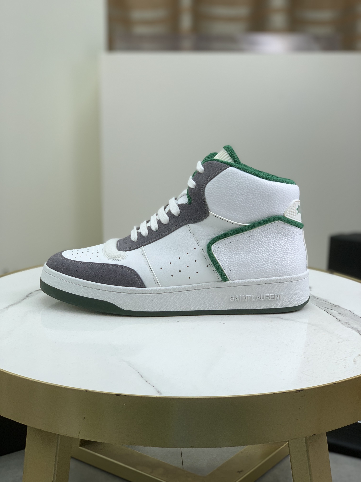 Model No. #4001?????? SAINT LAURENT low-top lace-up sneakers The new brand flagship store of S/L61 is now available on its official website. It features Italian original grain cowhide and front trim with perforated leather. The tie strap is decorated with the golden SAINT LAURENT logo. The side is decorated with the SL 61 logo, the back is embossed with the Saint Laurent logo, and the inner part is made of Tw soft towel fabric, which further enhances the softness, breathability and support of the shoes. There is no midsole last design, and memory insole insoles are added! The foot feel is incredibly comfortable and lightweight. The eco-friendly and anti-slip rubber two-tone outsole and the true stitching around the outsole further enhance the comfort and firmness of the entire pair of shoes. Perfection speaks for itself in the details! 5 ? Color available: Size :39-44 (custom-made for 38 and 45) Original box packaging + dust-proof bag